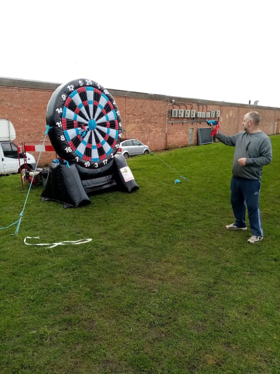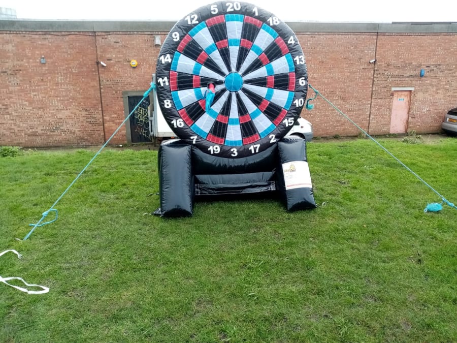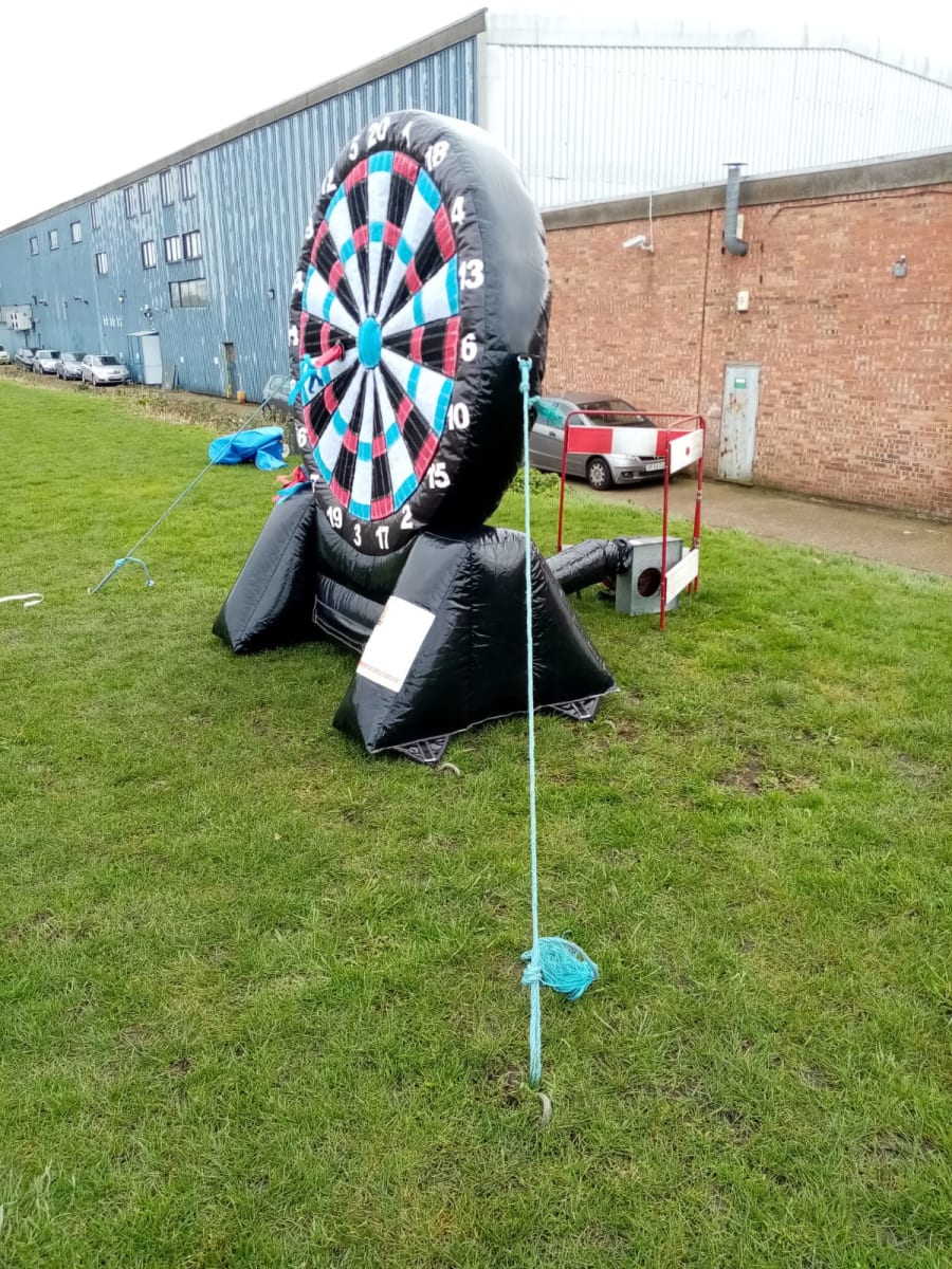 This fantastic Inflatable is 2 games in 1. Not only is it a HUGE Darts board, it's also a GIANT Foot dart board too! Just because your good at traditional darts and football doesn't mean you'll be good at this to..... The wonky velcro darts and balls provides maximum fun for all the family, so children and adults can play alike.